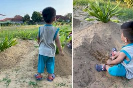 "Mama...Mama!!!" Panggil Bocah Ini Sambil Memainkan Tanah Kuburan Ibunya