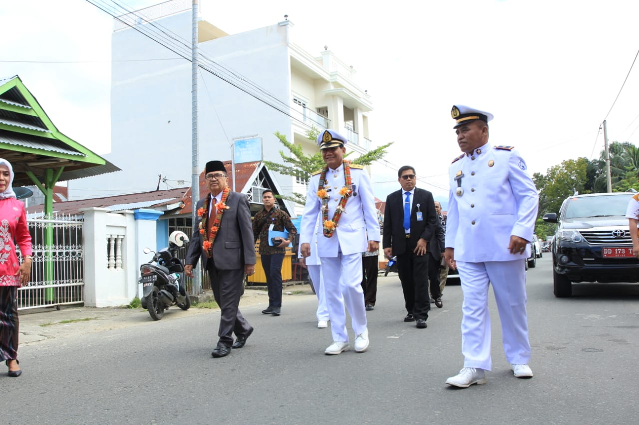 RAKYATKU.COM, PALOPO - Wali Kota Palopo, HM Judas Amir mengapresiasi pelantikan dan wisuda perwira pelayaran SMK Pelayaran Samudra Nusantara Utama Teknika tingkat IV dan Nautika tingkat IV di Lapangan Pancasila, Sabtu (29/6/2019).