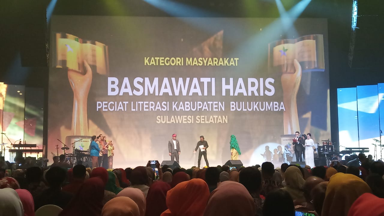 Disaksikan langsung oleh Bupati Bulukumba, AM Sukri A Sappewali, dan ketua PKK Bulukumba, Siti Isniyah Tomy Satria, Basmawati haris menerima langsung penghargaan itu dari Menpan-RB Syafruddin, didiampingi Kepala Perpurnas Syarif Bando dan Duta Baca Indonesia, Najwa Shihab.
