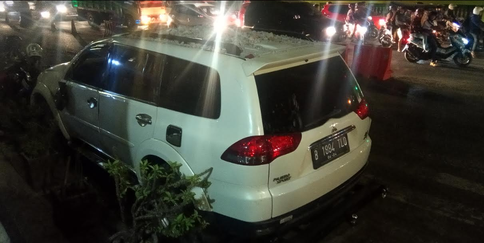 Mobil tersebut dikendarai oleh Rafli, 16 tahun, bersama ke enam rekannya. Mereka semua selamat dan hanya mengalami luka lecet. Mereka mengendarai mobil dengan tujuan ingin pergi ke Malino. Namun Rafli tak bisa mengendalikan mobilnya saat melaju dengan kencang.