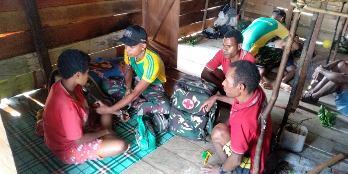 Satgas Pamtas RI-PNG Yonif Raider 509 Kostrad Pos Tatakra itu melaksanakan kegiatan patroli kesehatan di Kampung Tatakra, Distrik Web, Kabupaten Keerom, Papua, Jumat (31/1/2020).