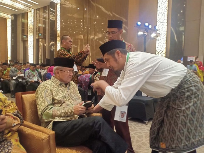 Ketua panitia pengarah KUII, Anwar Abbas (duduk) berbincang dengan ketua panitia, Ustaz Zaitun Rasmin.