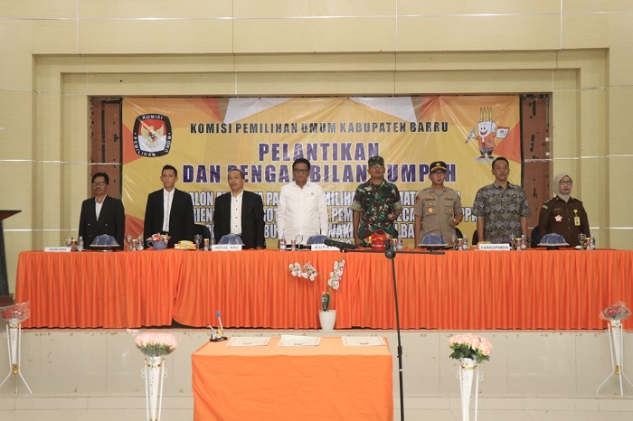 Pelantikan dan pengambilan sumpah dipimpin Ketua KPU Barru, Syarifuddin Ukkas. Anggota PPK ini terdiri lima orang untuk masing-masing kecamatan.