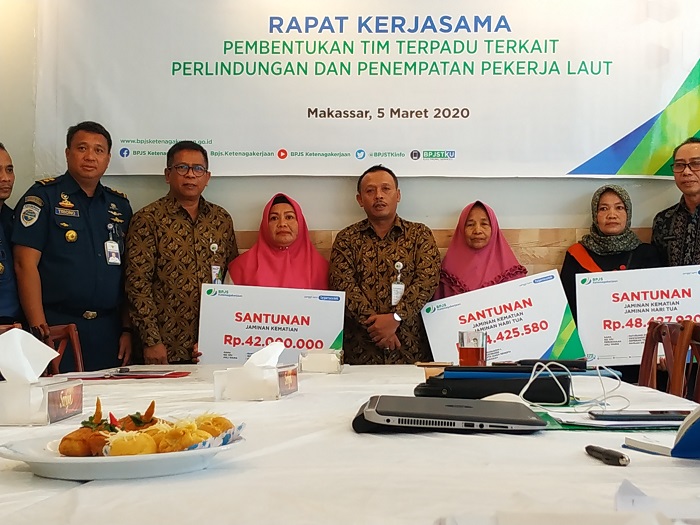 Penyerahan santunan dilakukan di Rumah Makan New Ratu Gurih, Jalan Datu Museng Makassar. Bertepatan dengan rapat kerja sama pembentukan tim terpadu dan penempatan pekerja laut oleh BPJS Ketenagakerjaan Makassar.