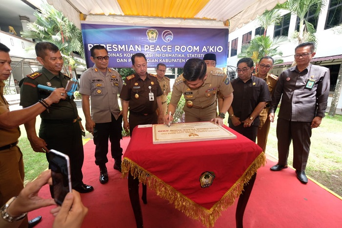 RAKYATKU.COM - Bupati Gowa, Adnan Purichta Ichsan meresmikan Peace Room A'Kio Dinas Komunikasi Informatika Statistik dan Persandian (Diskominfo-SP) Kabupaten Gowa, Senin (9/3/2020).