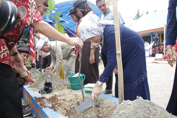Pada pencanangan sekolah sehat dan ramah anak yang ditandai dengan peletakan batu pertama gerbang sekolah, dirangkaikan dengan penyaluran infak dan sedekah dari para alumni dan tamu undangan.