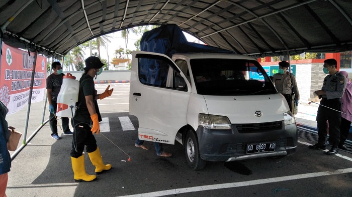 Setiap masyarakat yang memasuki perbatasan Bantaeng dilakukan pengecekan suhu tubuh. Lalu, disemprotkan cairan antiseptik. Kendaraan ikut disemprot.