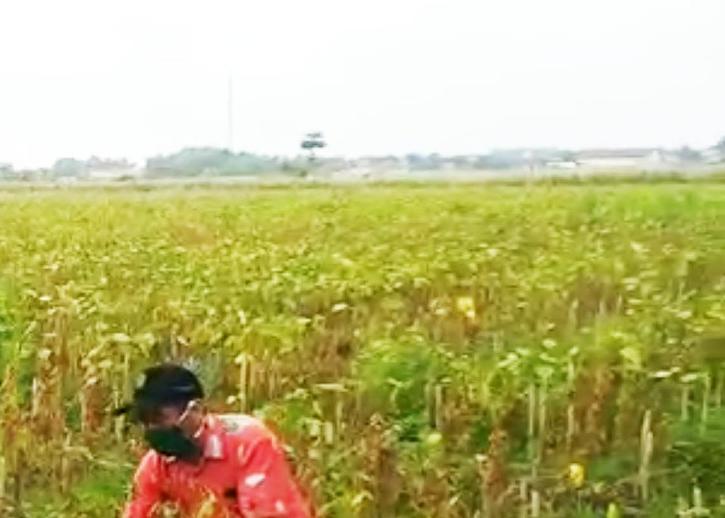 Baru-baru ini petugas penyuluh di Kecamatan Kangkung, Kabupaten Kendal menunjukkan lahan kedelai Kelompok Tani Rukun yang siap dipanen.