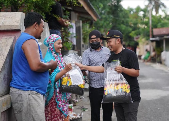 Paket beras itu digabung dengan sejumlah kebutuhan pokok lainnya seperti mi instan dan telur. Juga disisipkan jadwal imsakiyah Ramadhan. Juga masker untuk digunakan warga yang terpaksa harus keluar rumah.