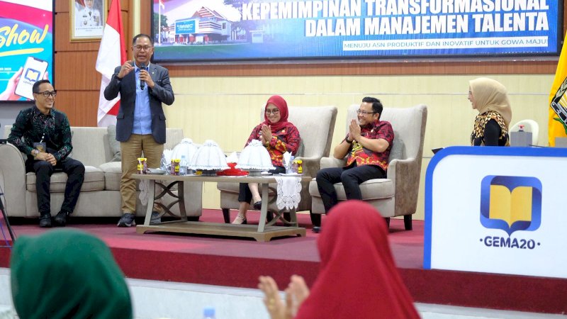 Hal tersebut disampaikan Bupati Gowa, Husniah Talenrang saat membuka Talkshow Kepemimpinan Transformasional dalam Manajemen Talenta sekaligus Launching Gerakan E-Learning Mingguan ASN 20 JP (GEMA 20) di Baruga Karaeng Galesong, Kantor Bupati Gowa, Kamis (4/9).